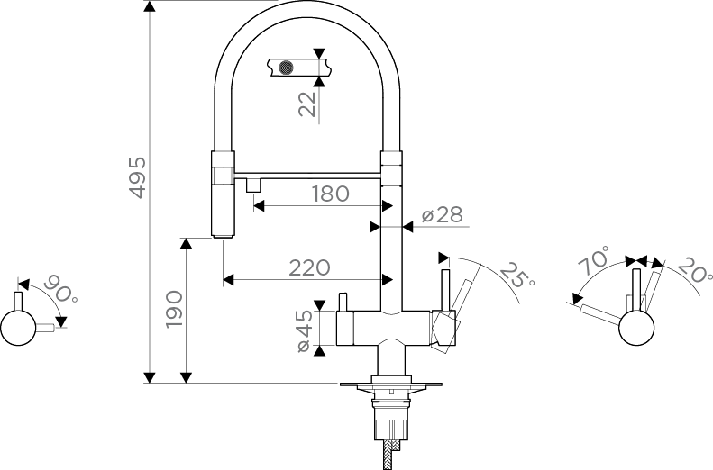 Длина излива: 220 мм