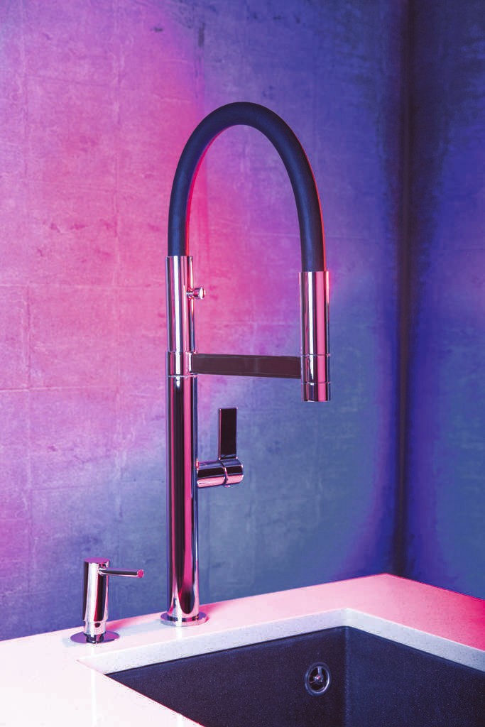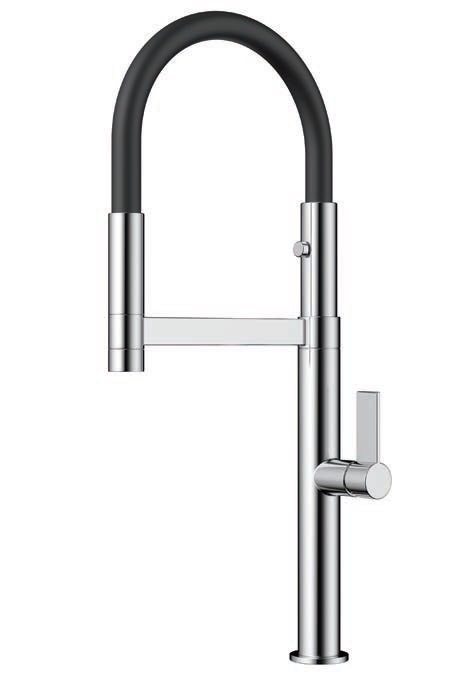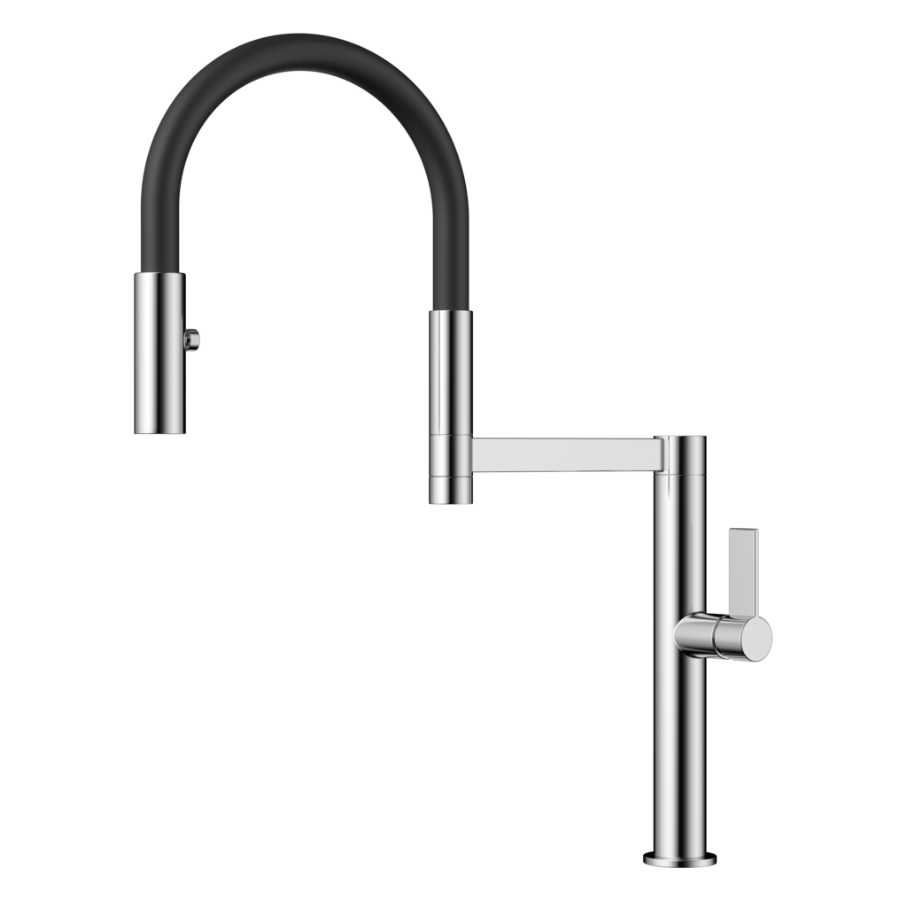 - Длина высокого поворотного излива увеличивается по желанию за счёт шланга на магните.