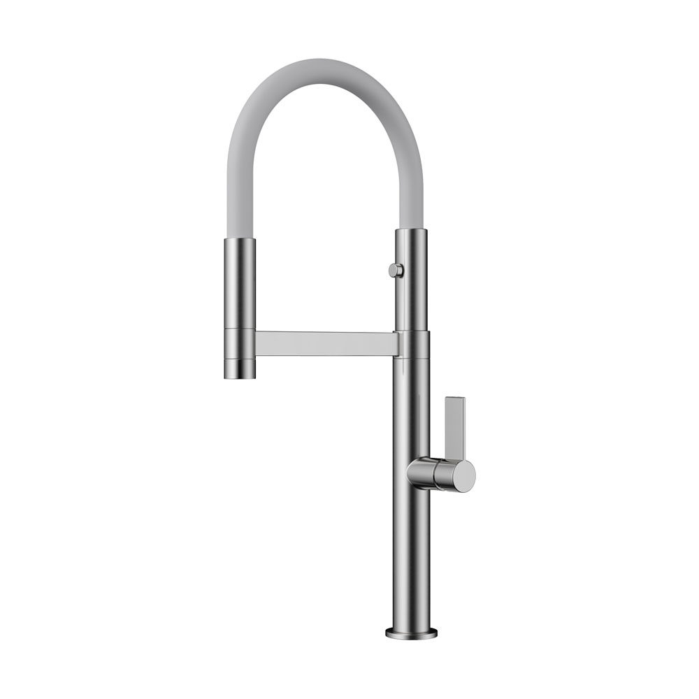 - Длина высокого поворотного излива увеличивается по желанию за счёт шланга на магните.
