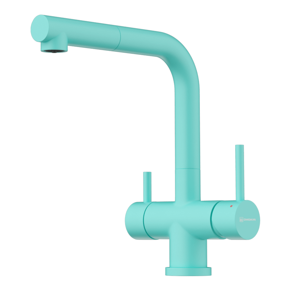 - Смеситель OMOIKIRI в категории 3 в 1: функция подачи холодной/горячей воды, возможность подключения фильтров для очистки и наличие вытяжного шланга.