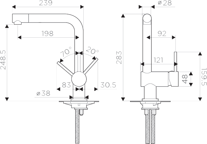 Высота излива: 248,5 мм
