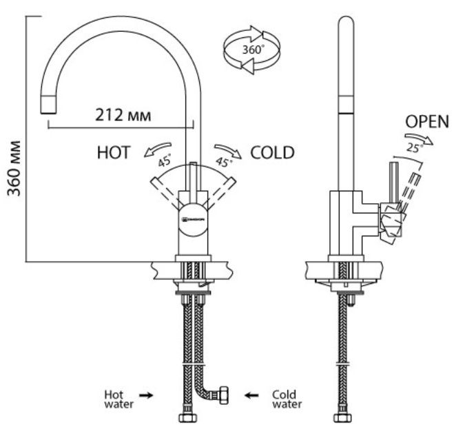 Высота излива: 360 мм