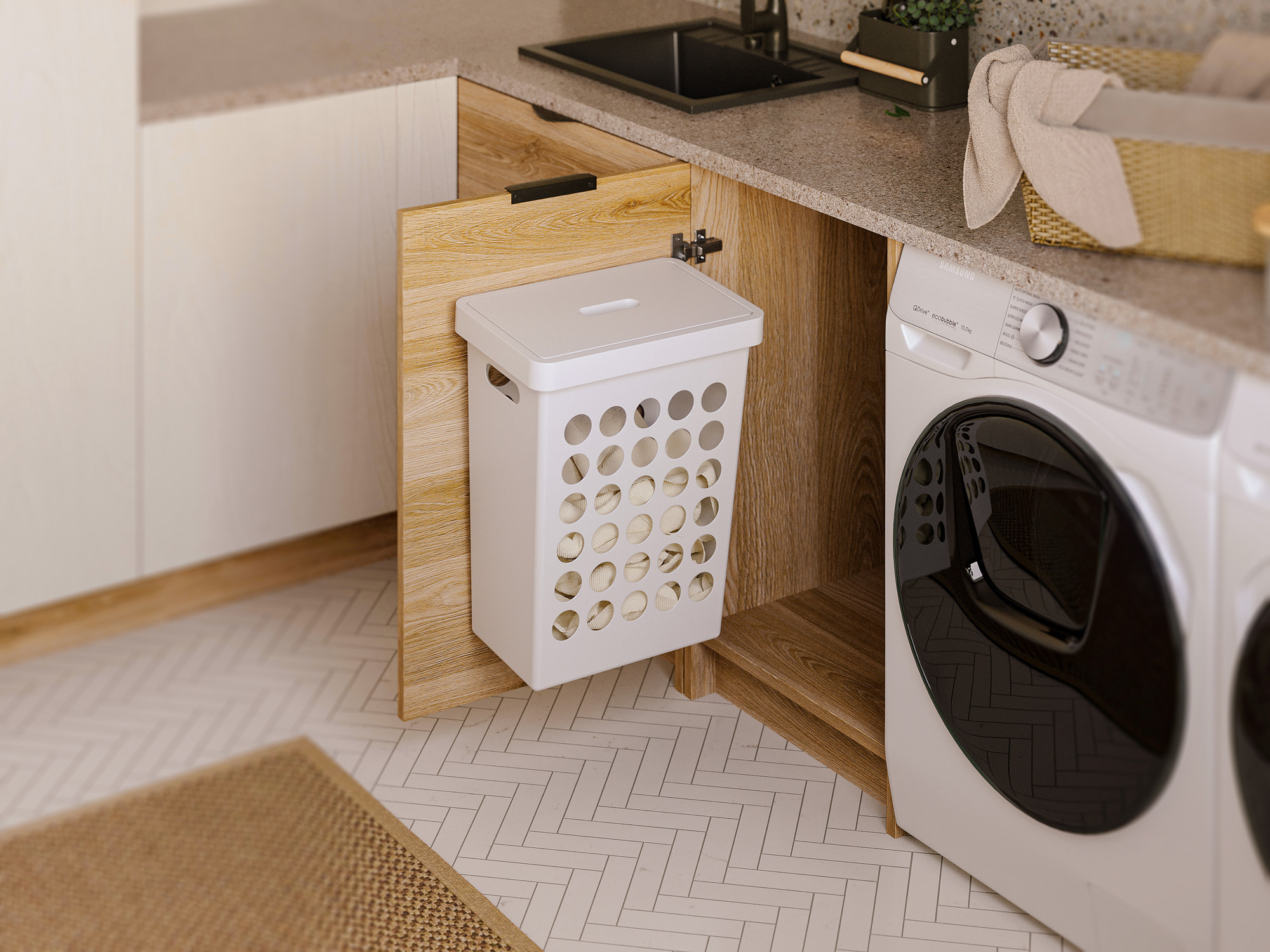 Корзина для белья, 33л, 395х250х500мм, с крышкой, пластик, белый