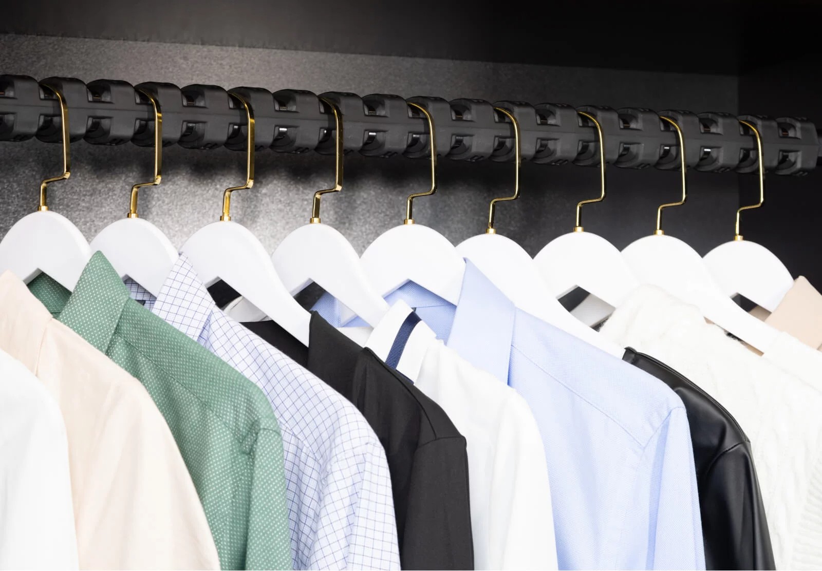 Не придется выдвигать поперечную штангу, чтобы добраться до нужного предмета гардероба.