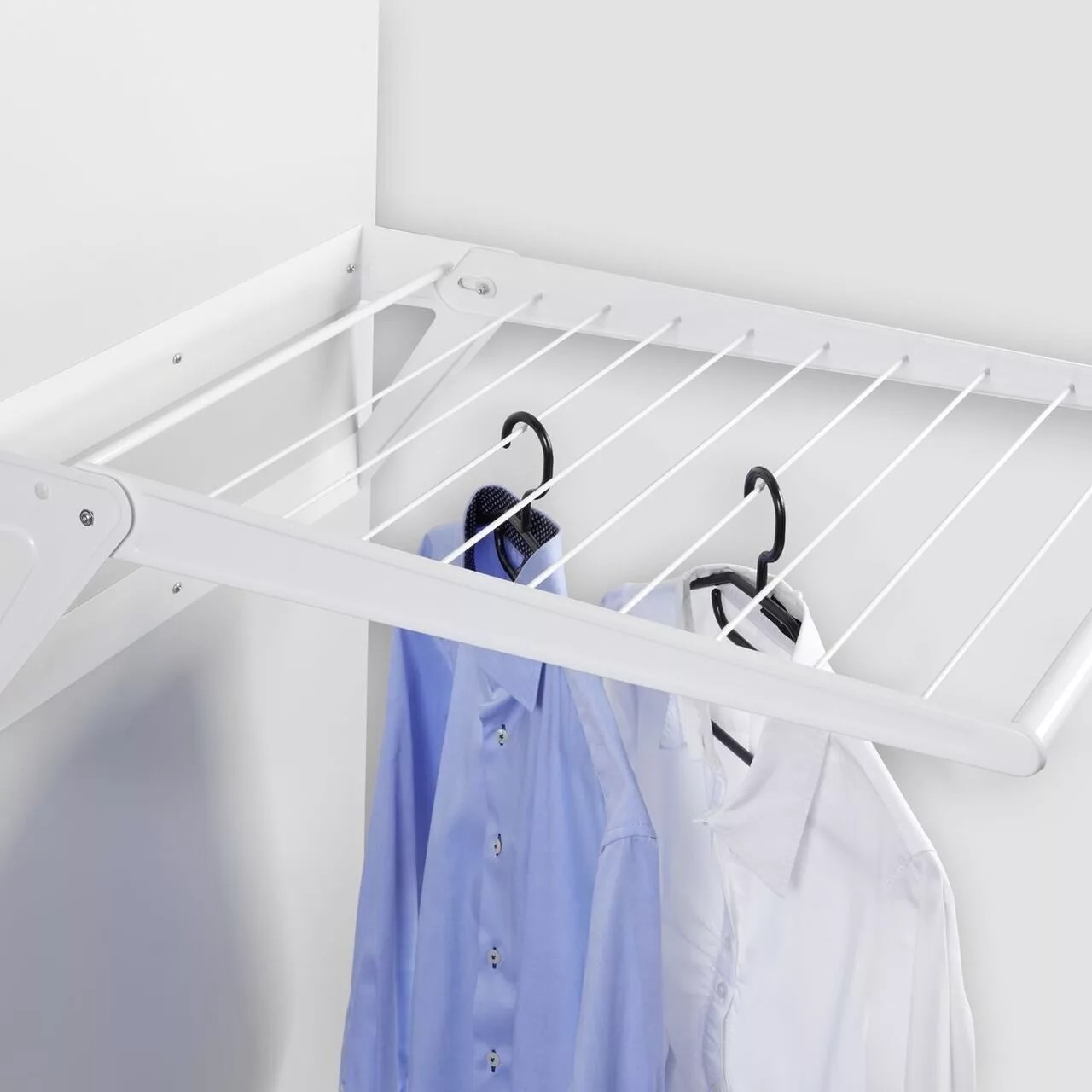 Сушку можно закрепить на индивидуально-удобной высоте на внешней стенке шкафа. Можно устанавливать внутрь шкаф, если его ширина более 900мм. Сушка складная, легкая, выполнена из стали, окрашенной в белый цвет. Легкий монтаж без специальных инструментов. Домашняя прачечная – это встраиваемые системы наполнения шкафов постирочных комнат или ящиков кухни рядом со стиральной машиной. Решение, благодаря которому можно удобно хранить белье, стирать, сушить и гладить.