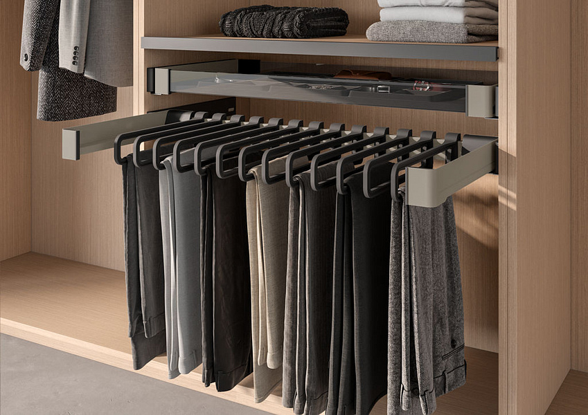 Комплект Conero: Держатель для брюк и юбок выдвижной 450 мм, Конеро W 552-612 мм, D 475 мм, с 7 вешалками, цвет ШАМПАНЬ (5486909853)