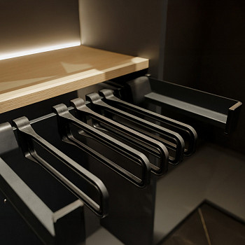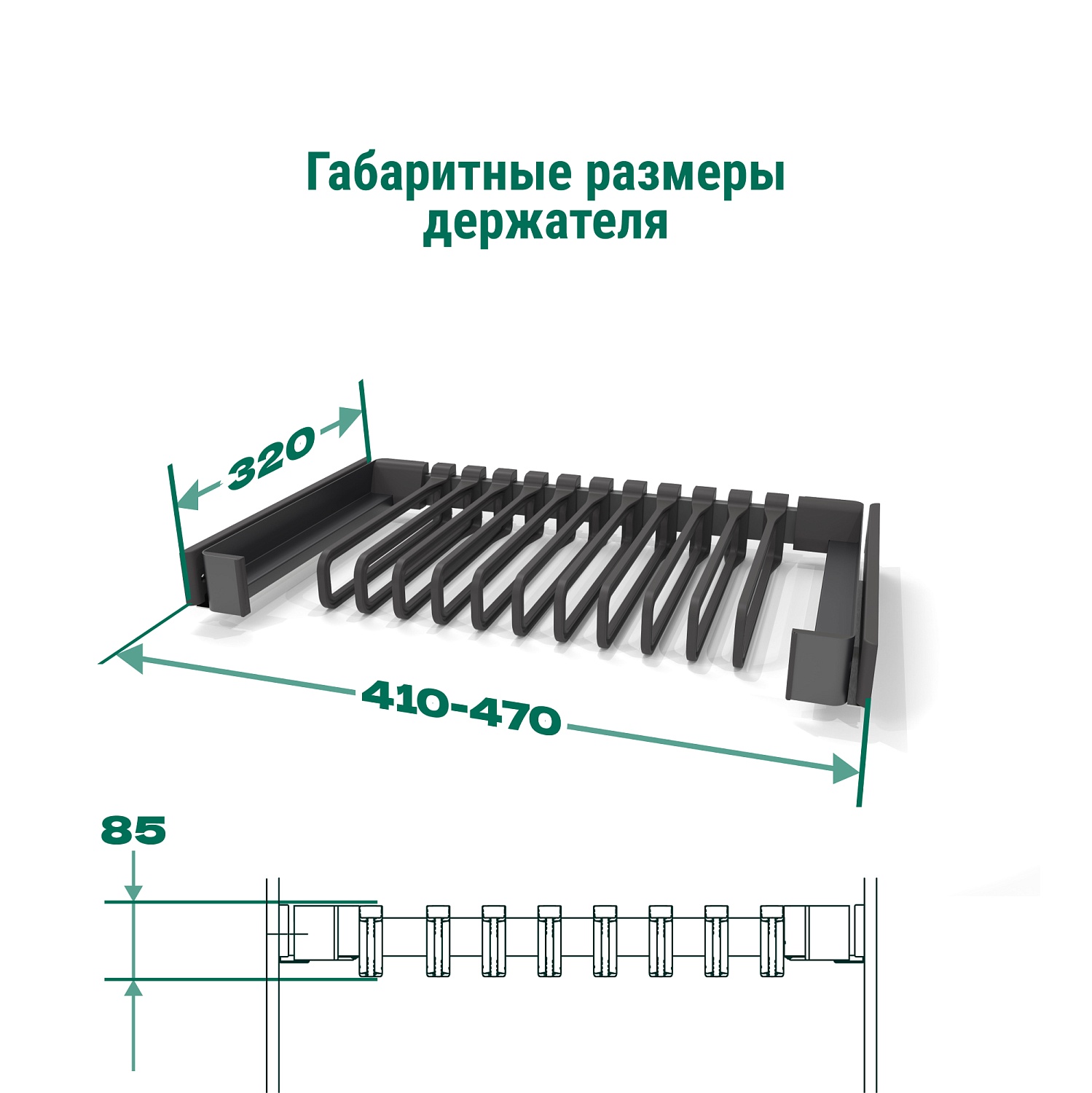 КОМПЛЕКТ Держатель для брюк и юбок выдвижной 320 мм, Конеро W 410-470 мм, D 345 мм, с 5 вешалками, ЧЕРНЫЙ (5387007021)