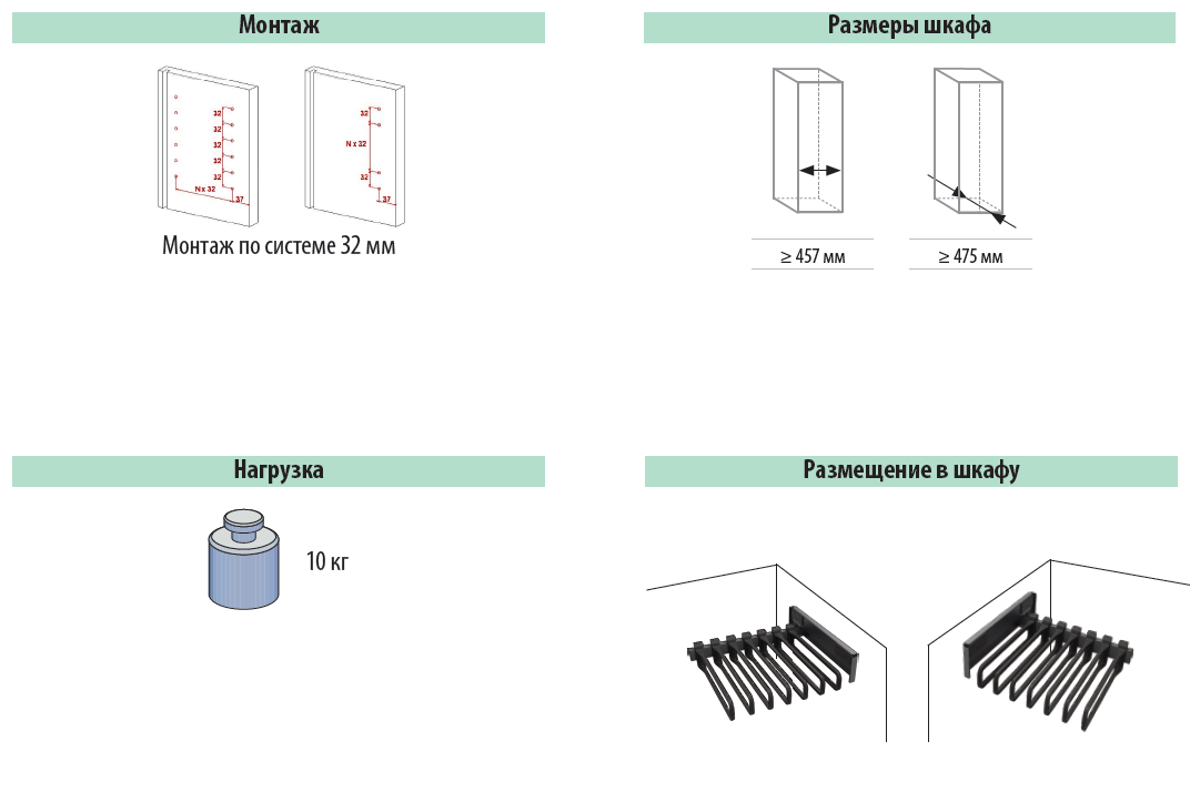 Conero Держатель для брюк односторонний выдвижной с 7 вешалками, Конеро, W 457 мм, D 475 мм