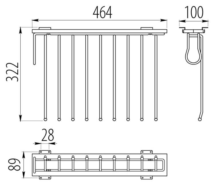 Обращаем внимание, что в Характеристиках товара указан размер вешалки в задвинутом состоянии (L=464 мм).