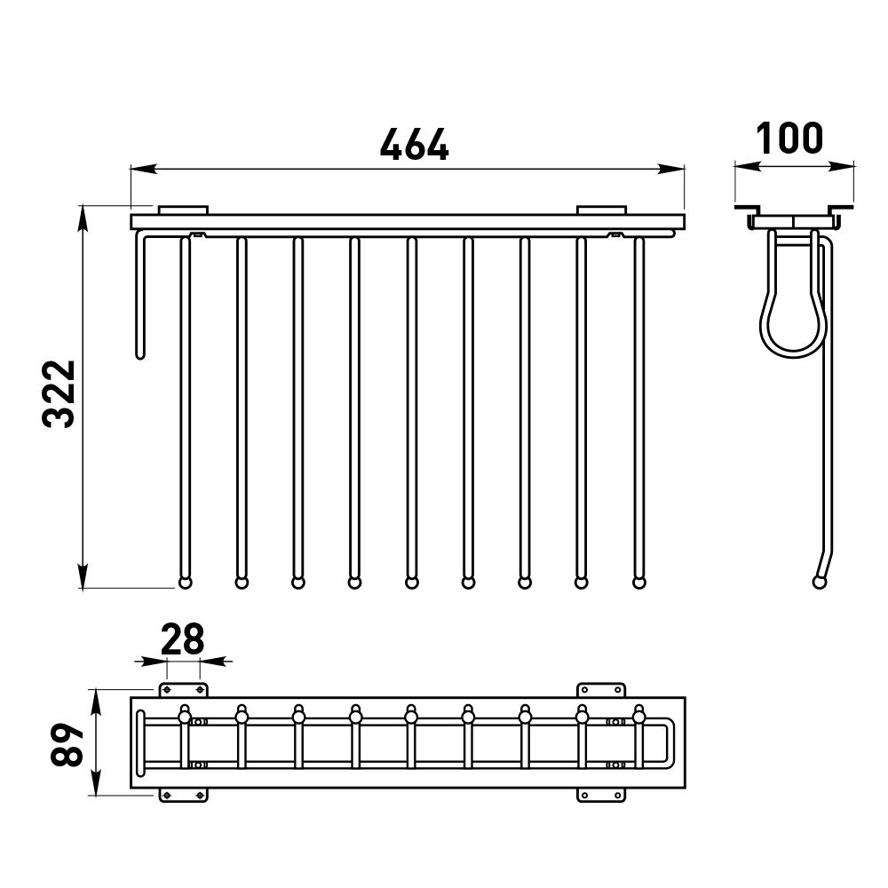 Обращаем внимание, что в Характеристиках товара указан размер вешалки в задвинутом состоянии (L= 464 мм).