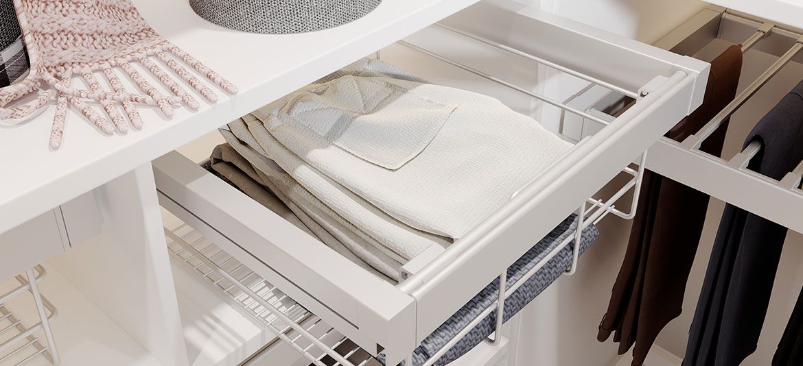 Корзина для белья WG-KOSZ60-10 белая, в модуль 600 мм, с доводчиком, полного выдвижения - гардеробная емкость для хранения одежды, устанавливаемая внутри шкафа в качестве выдвижной системы.