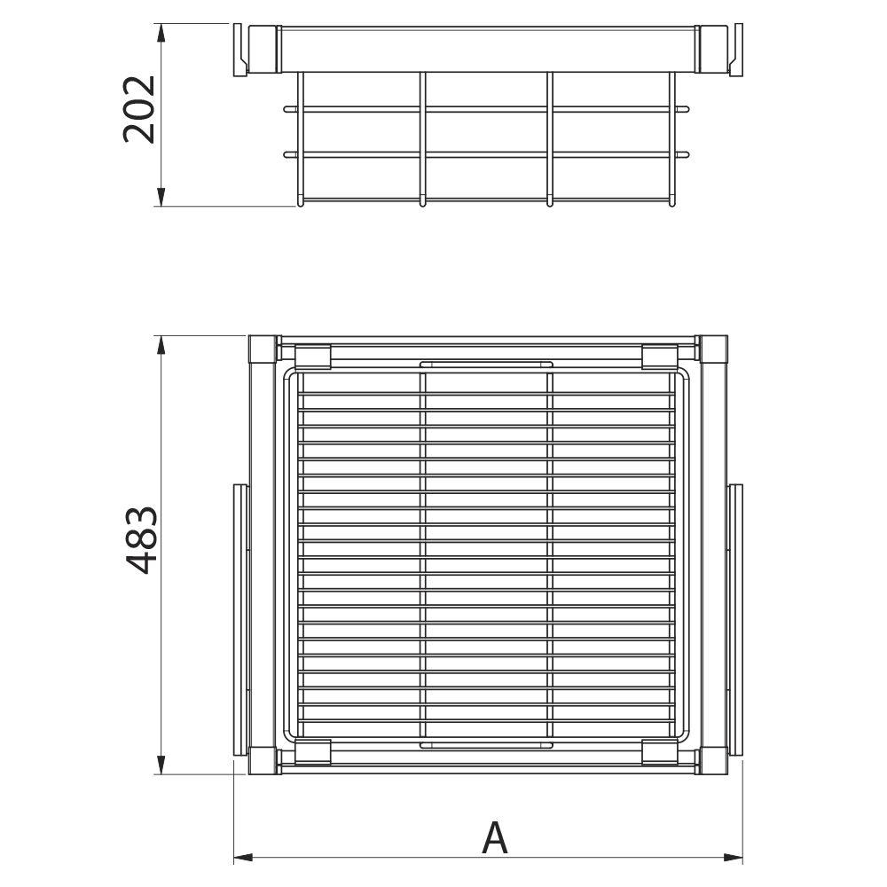 Ширина корзины регулируется в диапазоне 560 - 618 мм.