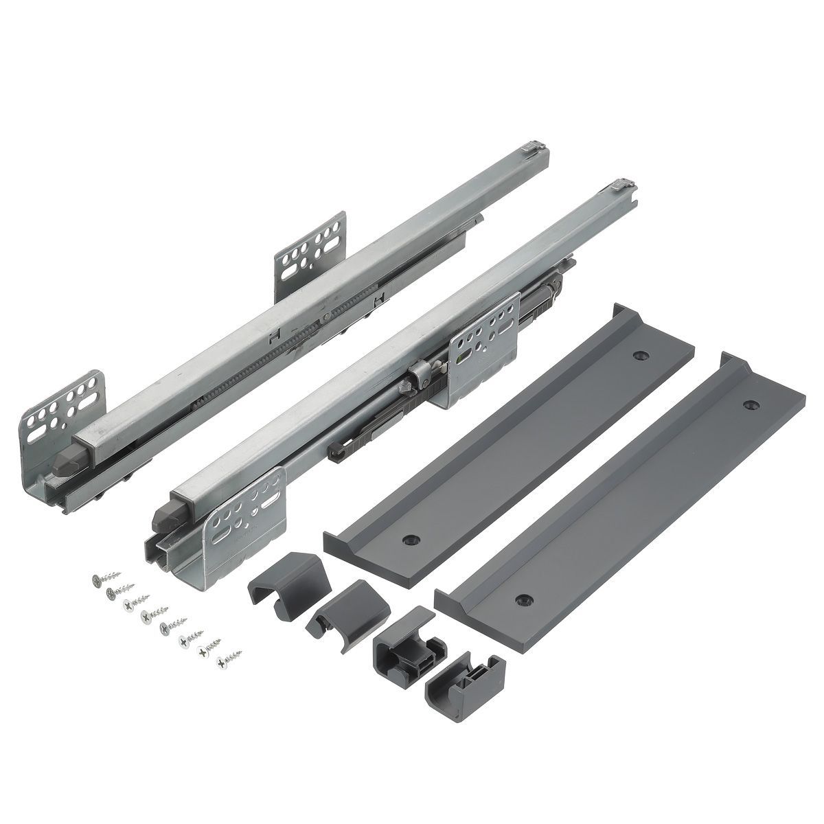 - Шариковые направляющие 450 мм (левая и правая) с доводчиком - 1 комплект.