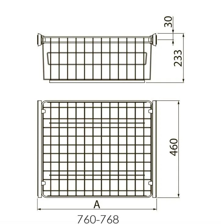 Благодаря телескопическим креплениям, ширина корзины при монтаже регулируется в диапазоне 760-768 мм.