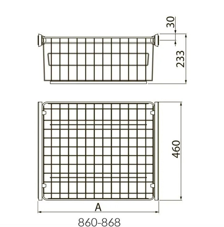 Благодаря телескопическим креплениям, ширина корзины при монтаже регулируется в диапазоне 860-868 мм.