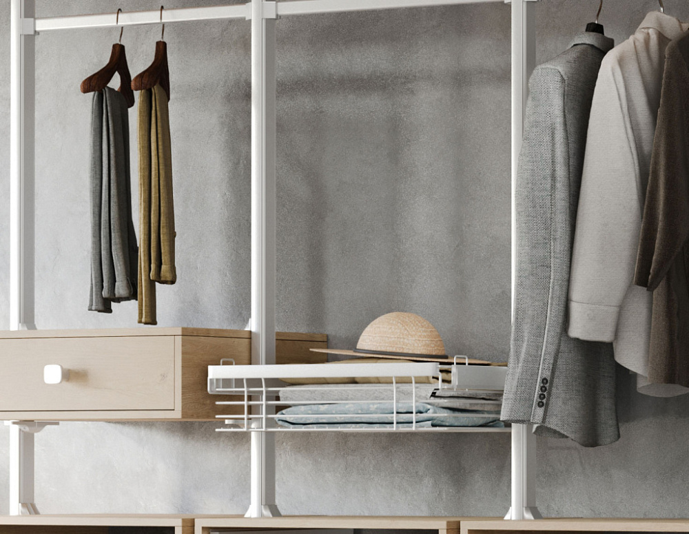 Гардеробное наполнение Fitline комплектуется шариковыми направляющими Slide Ball полного выдвижения.