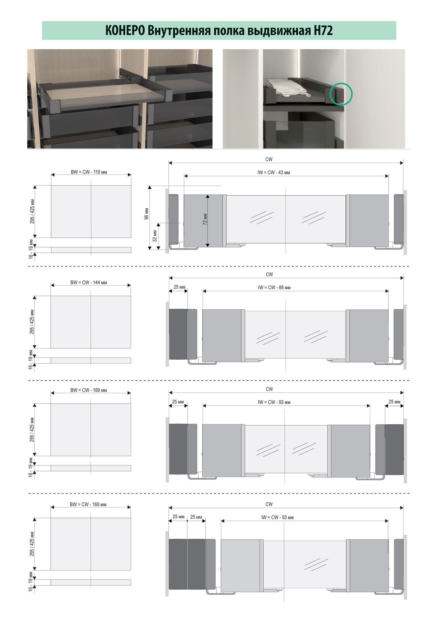 - Полка внутренняя выдвижная 450 мм, Конеро, H 72, без дна, передней и задней стенок, 1 шт, цвет ЧЕРНЫЙ (2383887021) 1 шт.