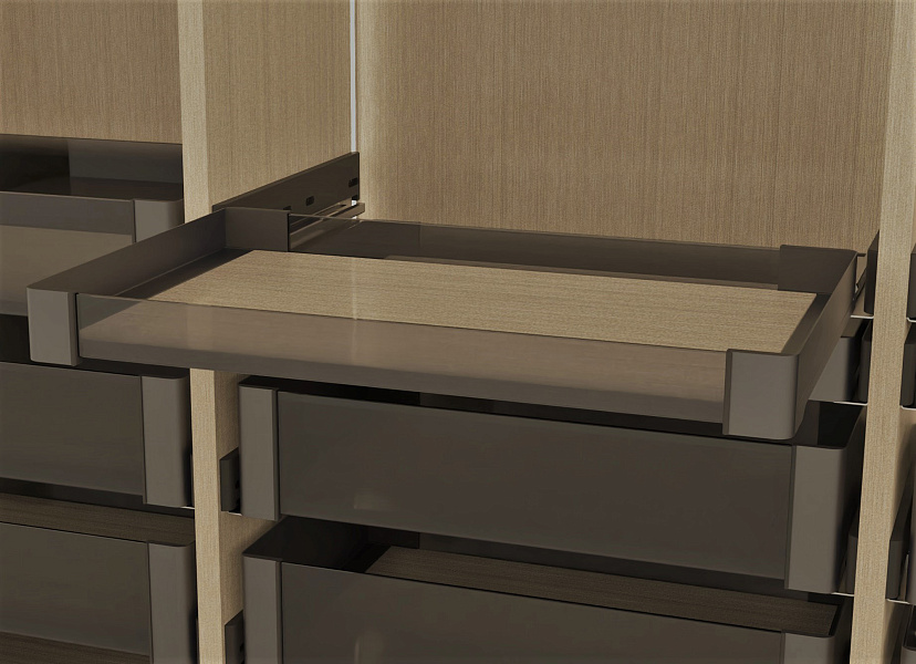 Полка выкатная Конеро, 450х760-820х72 мм, борт стекло, с направл. полн. выдв, шампань, Kessebohmer