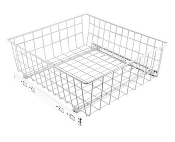 Выкатные сетчатые корзины SIBO - это экономичный и практичный вариант наполнения шкафа. Корзины имеют стандартную глубину, могут устанавливаться в модули различной ширины. Корзины имеют 3 высоты для хранения различных предметов одежды и утвари. Главное достоинство этой модели – возможность регулировать ширину конструкции в пределах 60 мм, нивелируя любые неточности в размере модулей. Корзина крепится к направляющей с помощью пластиковой втулки и длинного металлического штифта, на который приходится серьезная нагрузка. Это серьезное преимущество корзин SIBO перед корзинами, которые крепятся к направляющим при помощи так называемой пластиковой прищепки. Корзины выдерживают нагрузку 25 кг.