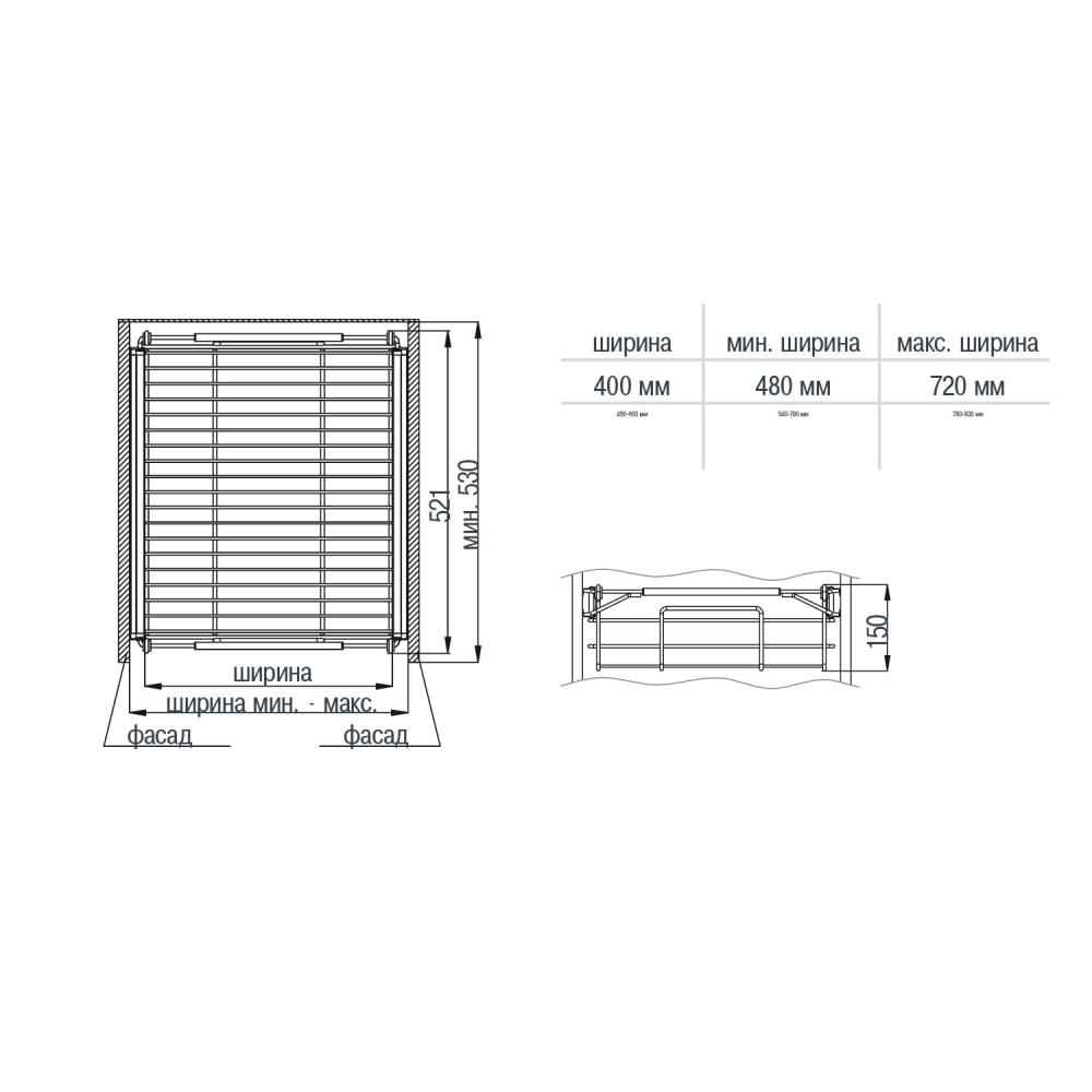 Решётчатая выкатная ёмкость для белья, L=540-700мм, h=150мм, с амортизатором, антрацит, Nomet