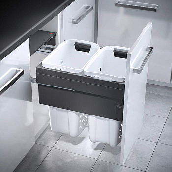 Система для хранения белья для установки в шкафы с внутренней глубиной не менее 530мм. Подходит для стандартных кухонных шкафов. Логичное оснащение шкафа рядом со стиральной машиной. Корзины с перфорациями для свободной циркуляции воздуха. Направляющие с панелями, препятствующими попаданию мусора в механизм и защемлению белья. Полное выдвижение для комфортного доступа. Мягкое плавное открывание и закрывание. Для более полного оснащения хозяйственного помещения рекомендуем рассмотреть наполнение для шкафа или колонки из проекта Lundry Area.
