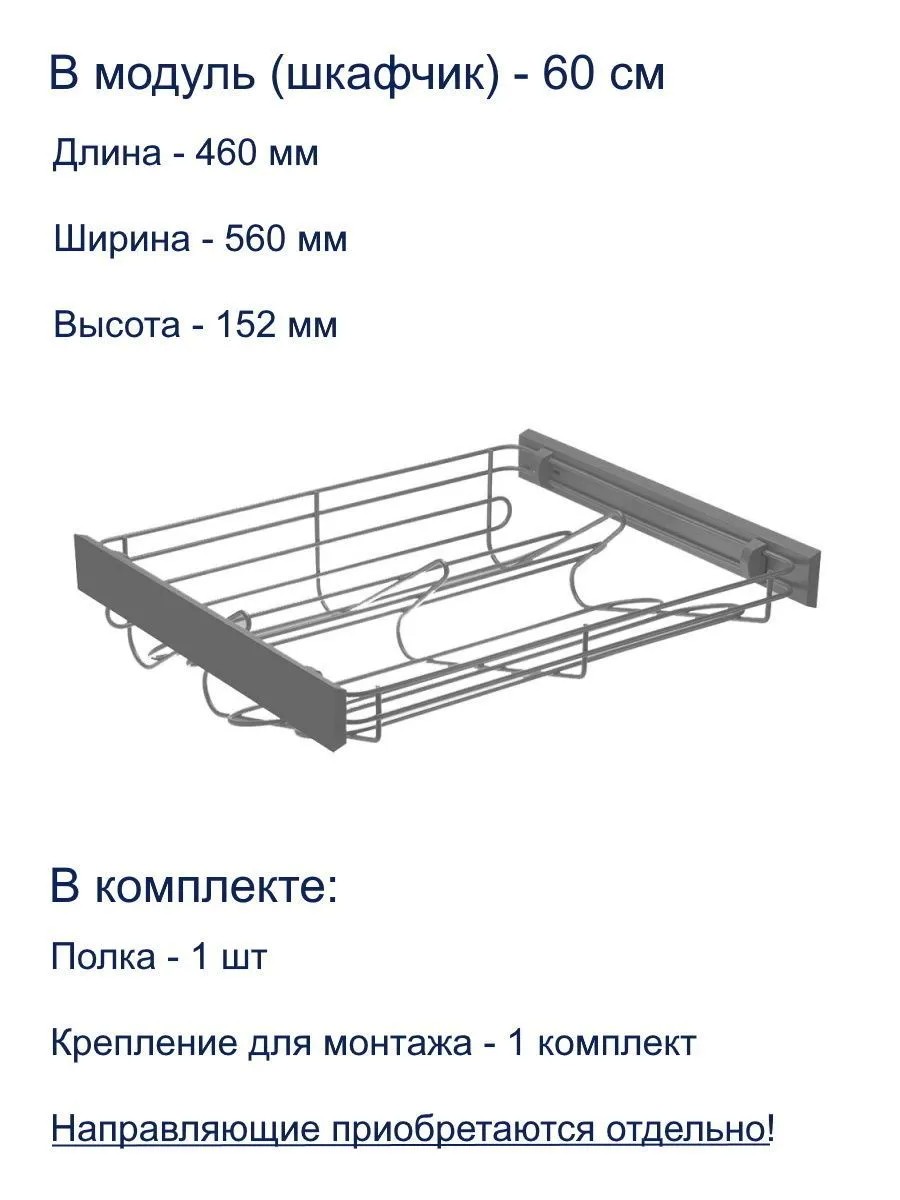 Направляющие (L = 450 мм) не входят в комплект и приобретаются отдельно, в зависимости от предпочтений по специфике функционала (без доводчика, с доводчиком).