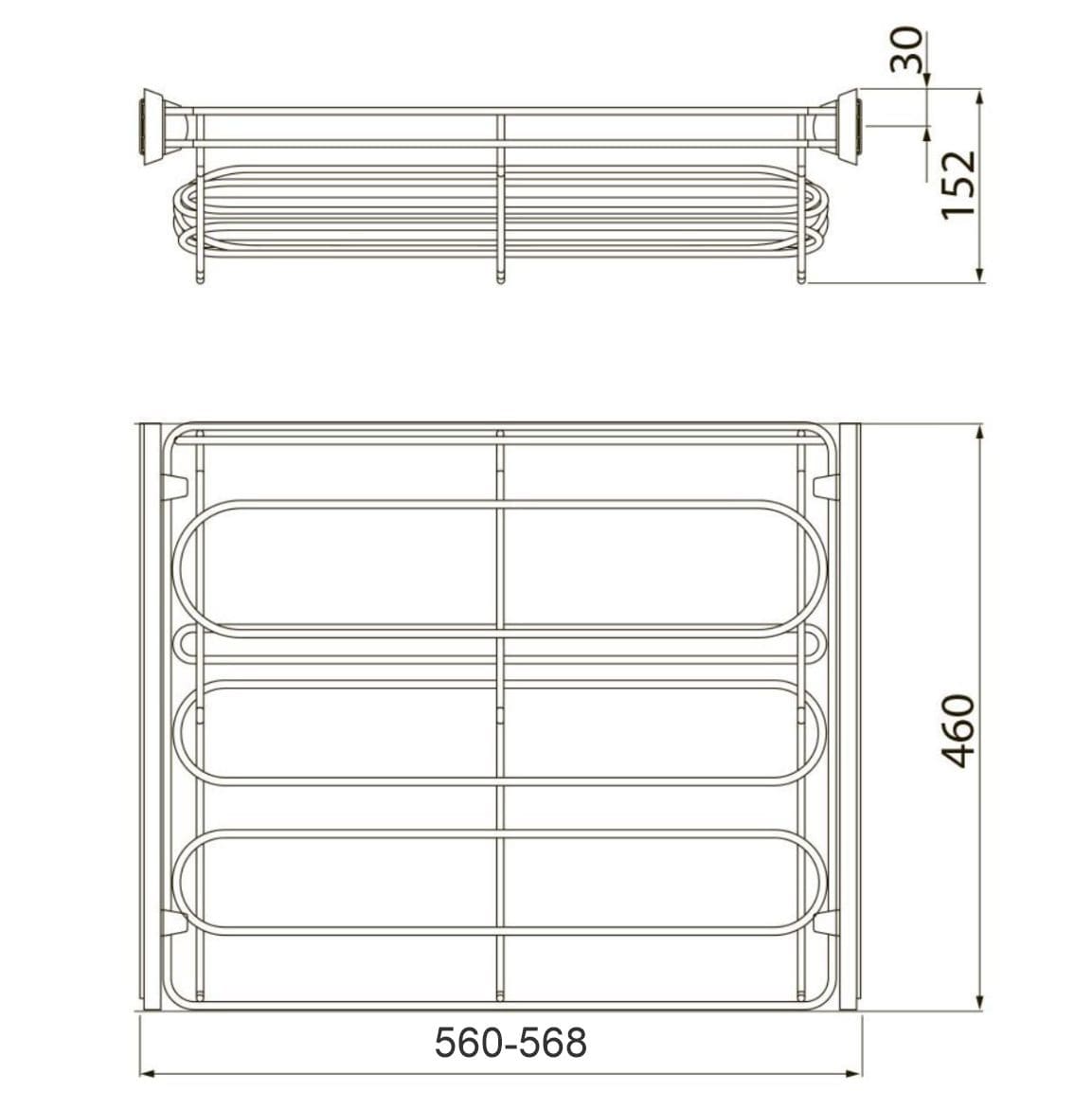 Ширина установки полки регулируется в диапазоне 560 - 568 мм.