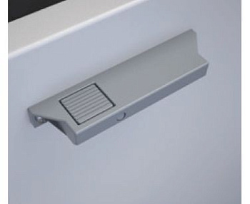 С таким фиксатором внутренний ящик можно открывать одновременно с фасадом. При необходимости закрыть ящик отдельно от фасада, фиксатор легко размыкается простым нажатием на клавишу.