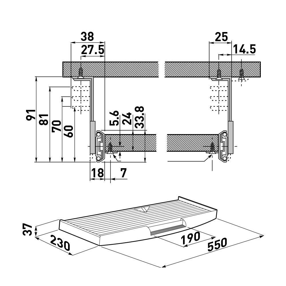 - Шариковые направляющие h=27 мм, с крепежными уголками – 2 шт.