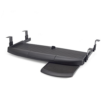 Полка для клавиатуры с подставкой под мышь, черная - выдвижная подставка для компьютерной клавиатуры, устанавливаемая под офисную столешницу. Конструкция полки также включает в себя подставку-коврик под компьютерную мышь.