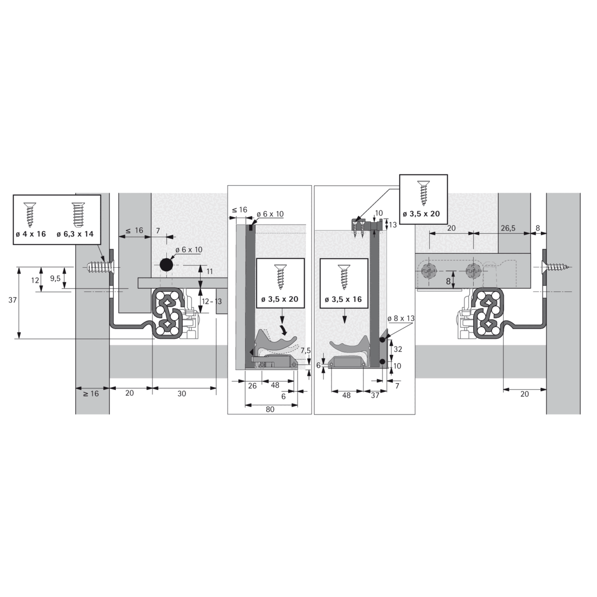 - Концепция единой платформы: идентичные размеры корпуса, ящика и передней панели для направляющих Quadro полного и частичного выдвижения надвижного монтажа
