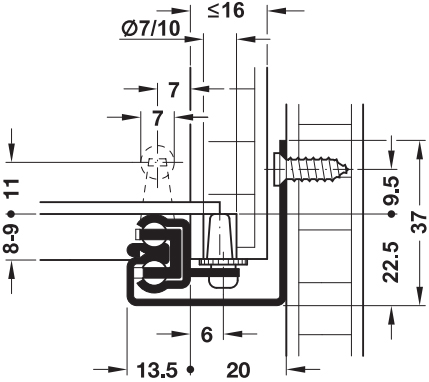• Для ящиков без мебельной ручки, с механизмом открытия ящика при нажатии на фасад (Push-to-open);