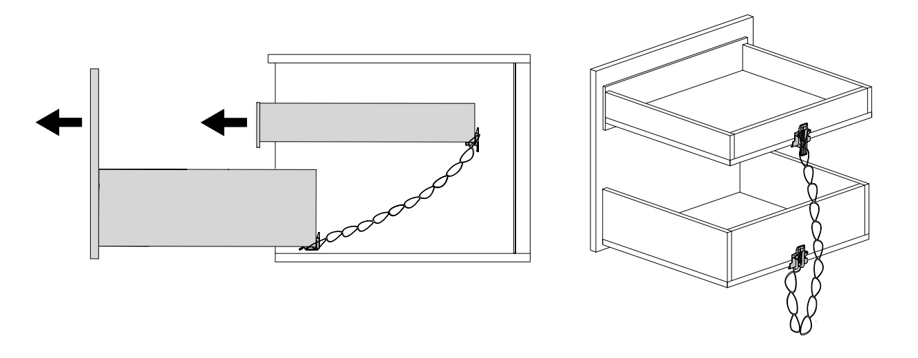 - Настройка выдвижения внутреннего ящика без инструментов, в зависимости от номинальной длины ящика и расстояния между ящиками.