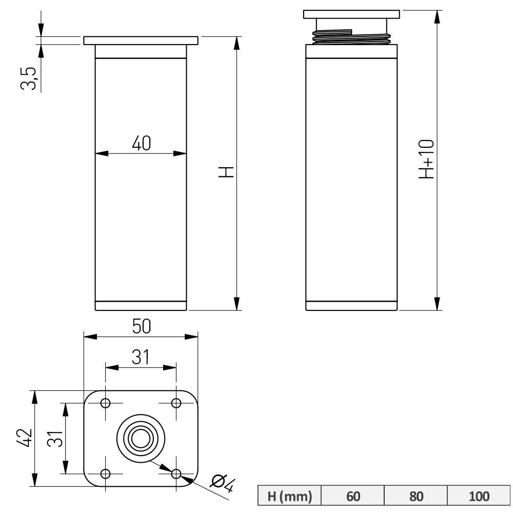 Опора регулируемая NM-DАК26-080 (80 мм), белый - мебельная ножка с регулировкой по высоте. Диапазон регулировки - от 80 мм до 90 мм.