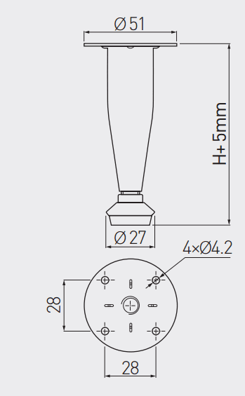 Опора регулируемая NM-BD-003-01 (конус), L-100 мм, хром - круглая мебельная ножка с регулировкой по высоте. Диапазон регулировки - от 100 до 105 мм.