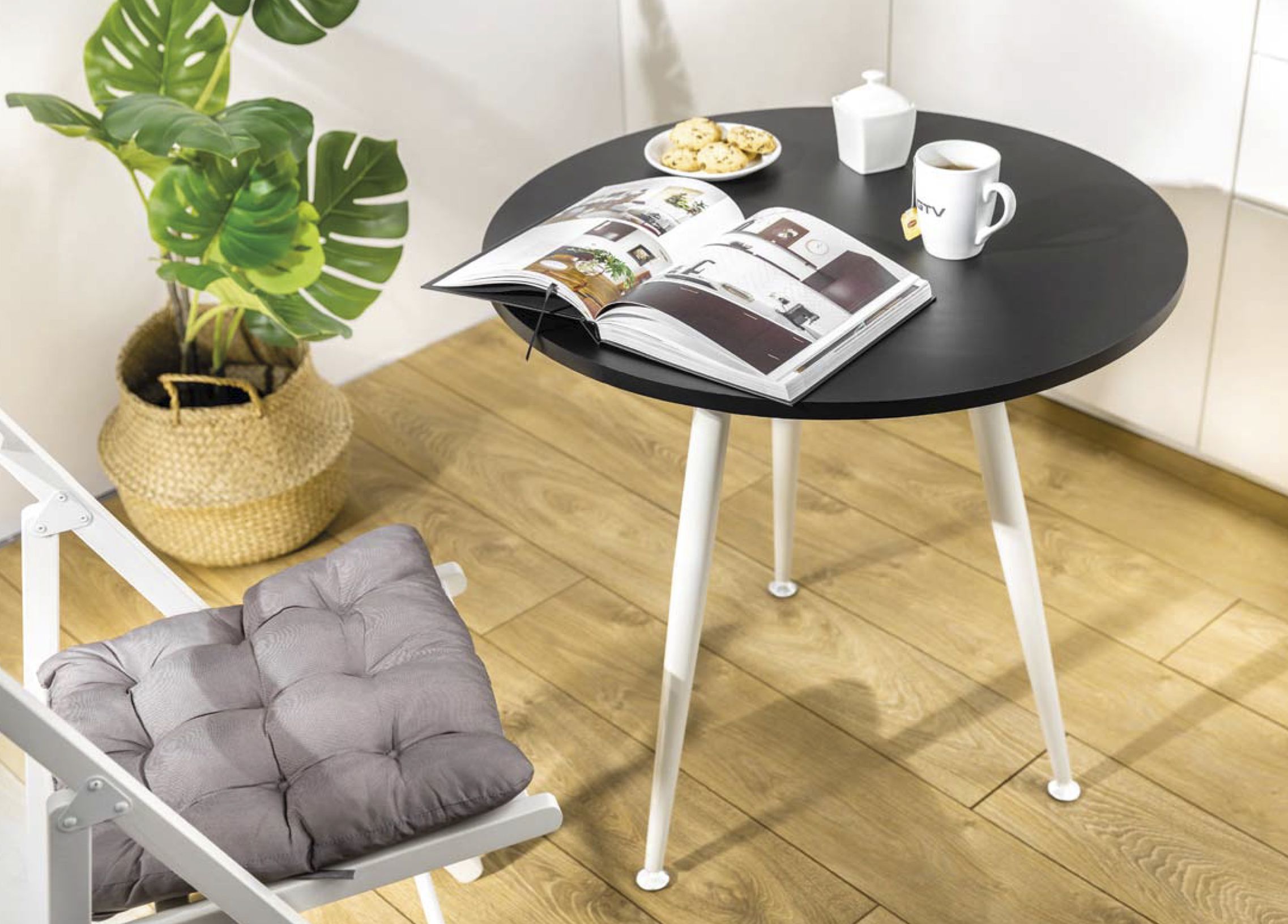- Конструкция предусматривает складывание опоры под столешницу, тем самым делая столик компактным для хранения и удобным для перемещения.