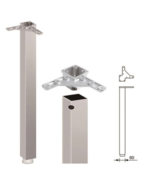 Труба для опоры, h=710мм, 60х60мм, боковое крепление, хром, с черной пяткой, CMF