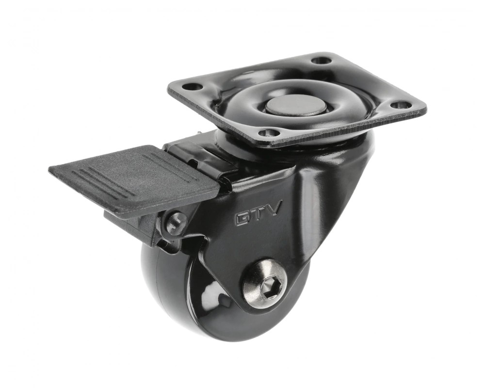 Колесо мебельное CALIBRO, d-35мм, черное, со стопором - опора для передвижных мебельных конструкций. Крепится к мебели посредством металлической пластины (площадки) 42x42 мм.