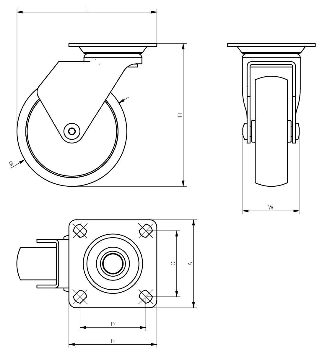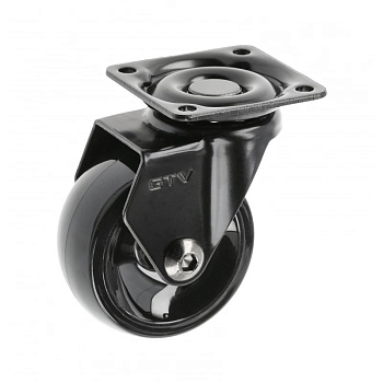 Колесо мебельное CALIBRO, d-50мм, черное, без стопора - опора для передвижных мебельных конструкций. Крепится к мебели посредством металлической пластины (площадки) 42x42 мм.