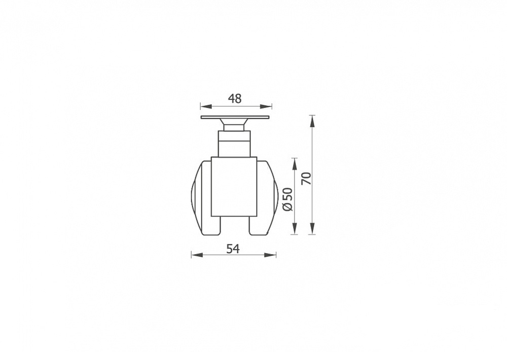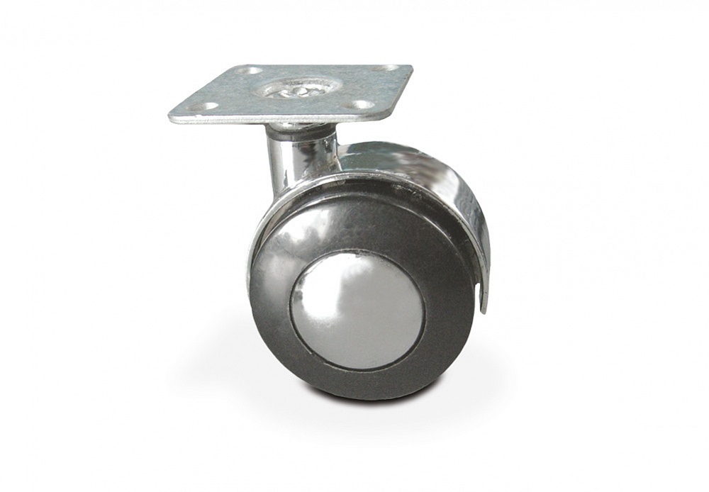 Поворотная колесная опора без тормоза, с площадкой для крепления к мебели 48х48мм. Материал: колесо - пластик, рама - замак, ось - сталь. Расчетная нагрузка - 40 кг.