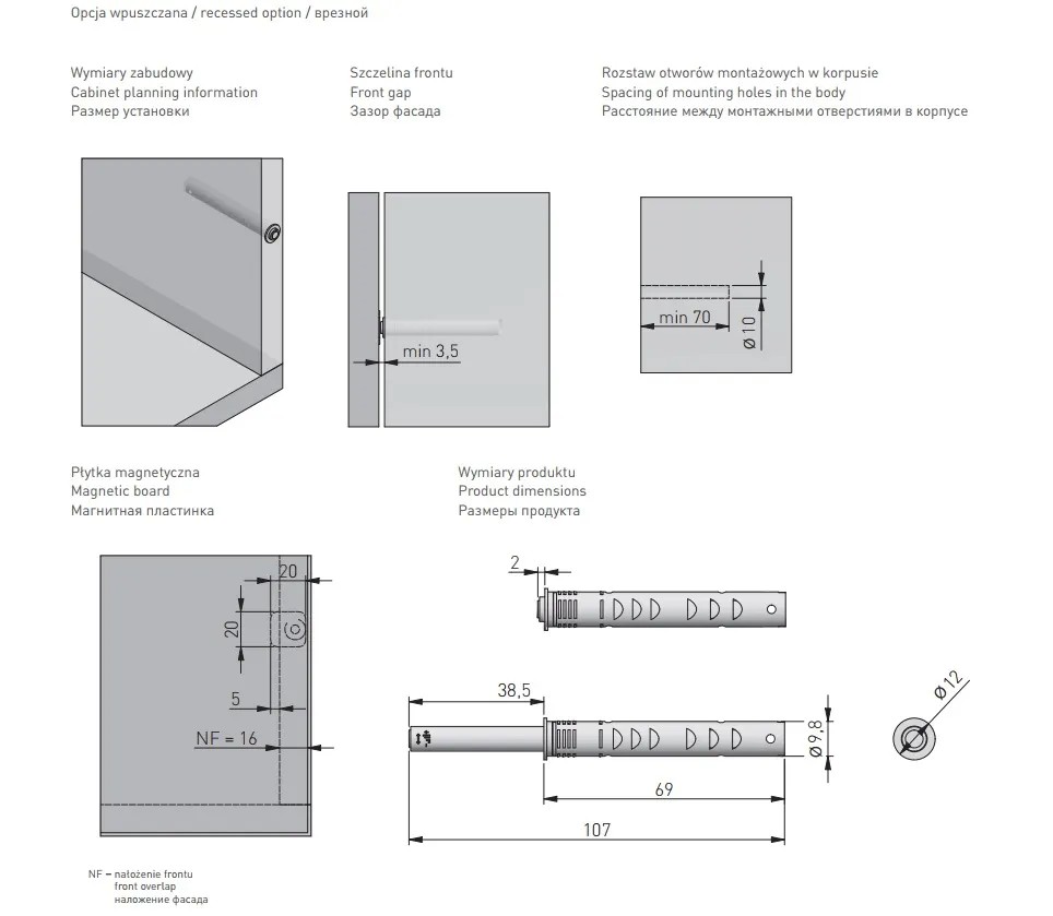 Выталкиватель врезной GTV Salto Nova, длинный, с магнитным окончанием, антрацит - функциональная фурнитура, предназначенная для открывания дверцы шкафа или выдвижения ящика в отсутствии мебельной ручки. Вы нажимаете на створку/ящик и открываете/выдвигаете фасад/ящик. Способ монтажа выталкивателя - врезной: для установки сверлится отверстие в торце корпуса мебельной конструкции.