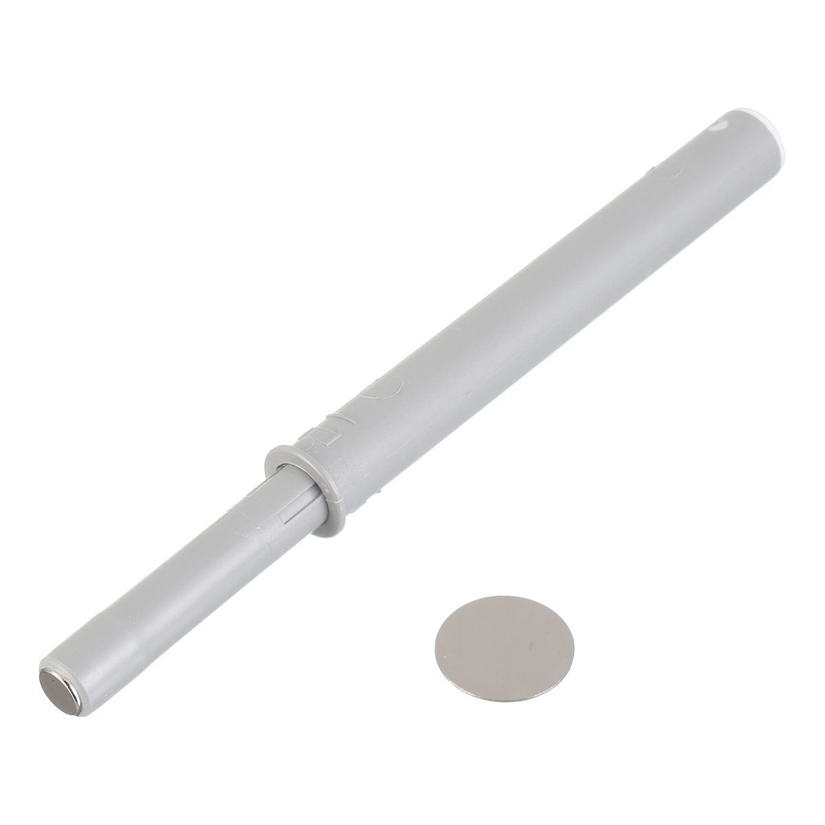 Выталкиватель AM-OWM длинный, с магнитным окончанием, серый - приспособление для открытия створки фасада или выдвижения ящика без использования мебельной ручки. Вы нажимаете на дверцу шкафа или лицевую сторону ящика, и срабатывает система Push to open. Благодаря магнитному окончанию цилиндра-демпфера, осуществляется дополнительная фиксация дверцы или ящика в закрытом состоянии. Выталкиватель устанавливается посредством врезки в торец корпуса мебельной конструкции.