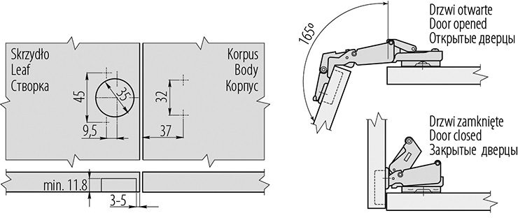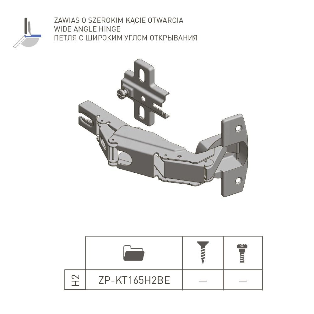 Петля накладная GTV 165 градусов, с H-2, 45 мм - механизм для деревянных мебельных фасадов с широким углом открывания.