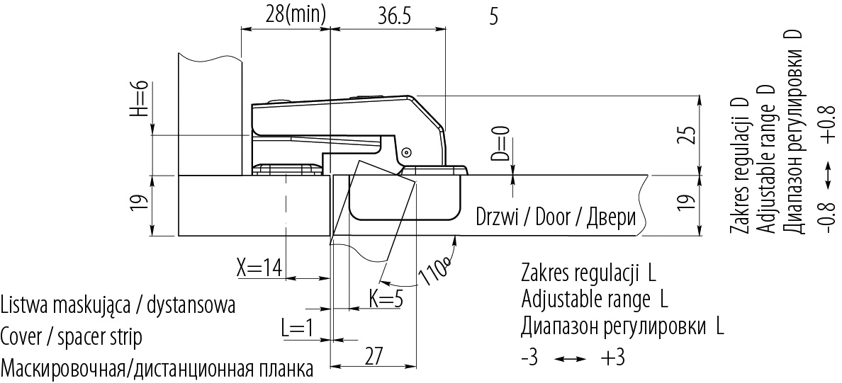 Петля накладная GTV 90 градусов, H-6, короткое плечо, для фальшпанелей, ZP-KTK90H6BE - механизм для открывания фасада под определенным углом, в соответствии с конфигурацией мебельной конструкции. В частности, применяется при использовании в кухонных гарнитурах декоративных плит – фальшпанелей.
