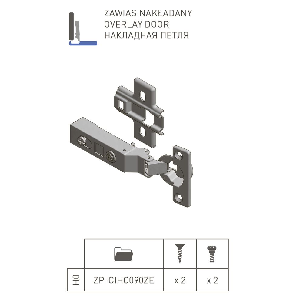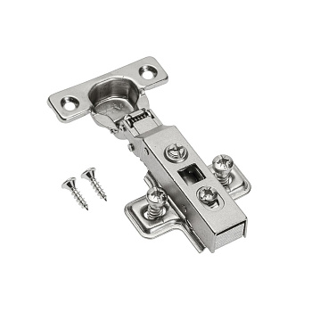 Петля GTV CIHC 09 mini, накладная, самозакрывающаяся, с планкой H-0, с евровинтами - механизм для открывания и закрывания мебельной дверцы. Мини-петля отличается от стандартной меньшим диаметром чаши – 26 мм (вместо 35 мм).