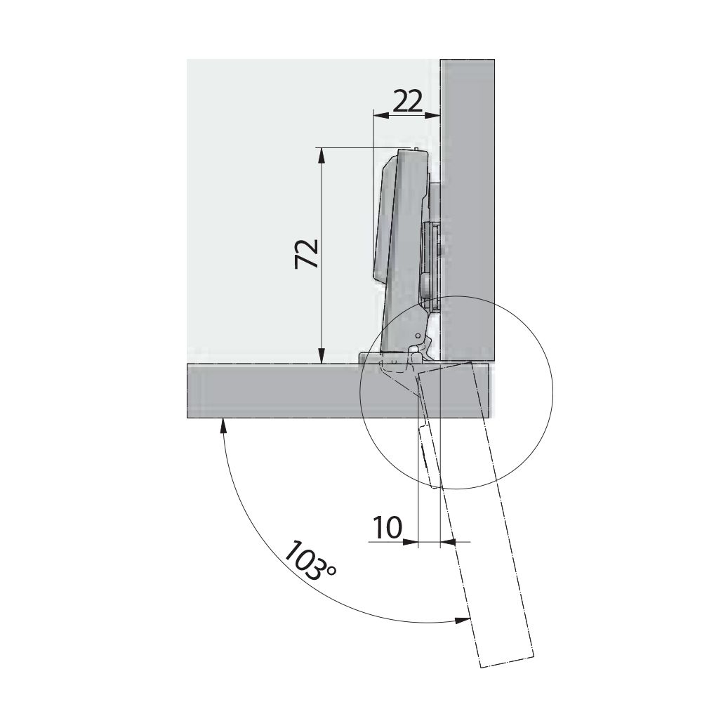 Угол открывания, °: 103