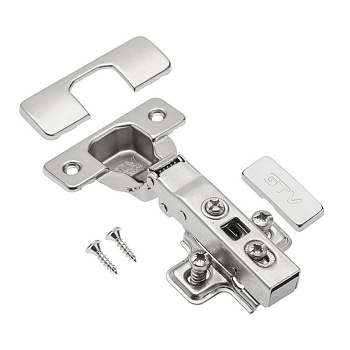 Петля GTV НС 09 накладная, самозакрывающаяся, с H-0, с евровинтами - устройство, посредством которого фасад прикрепляется к корпусу мебельной конструкции и осуществляется открывание/закрывание дверцы.