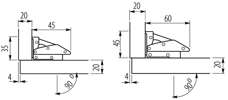 Угол открывания, °: 90