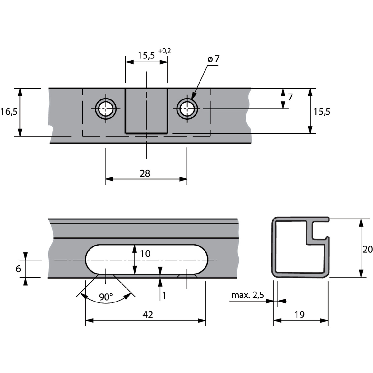- Адаптер для дверей с алюминиевой рамой 19 мм