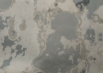 Серо-песочный со светлыми и тёмными пятнами камень. Крупный рисунок типа «топографическая карта». Перепады по толщине от 0,8 до 5 мм. Эффект камня, отполированного водой. Матовая поверхность.